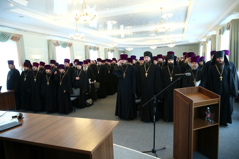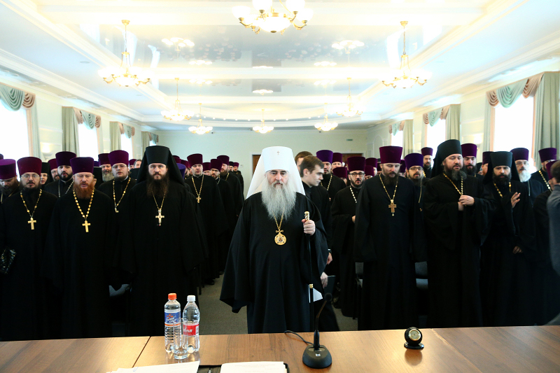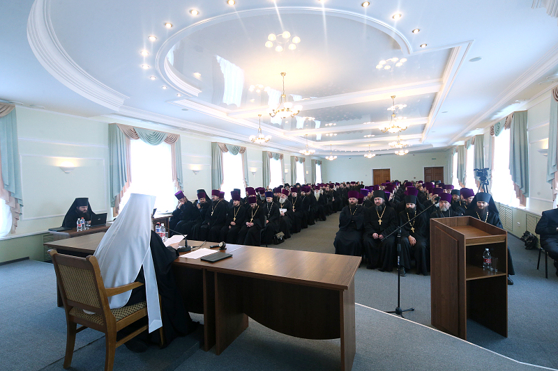 В докладе была также отражена работа образовательных епархиальных учреждений — духовной семинарии, межъепархиального женского духовного училища.
