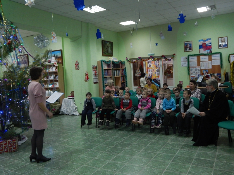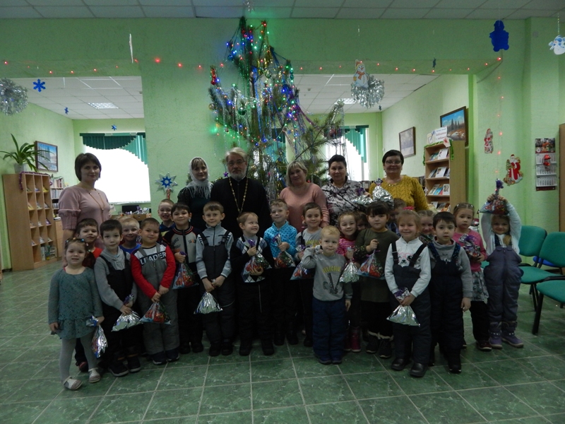 9 января клирик Казанского храма иерей Александр Солдатов посетил Рождественский утренник в Детско-юношеской библиотеке, на который были приглашены воспитанники старшей и подготовительной групп МДОУ №9 «Березка». Отец Александр рассказал детям о празднике Рождества Христова, а сотрудники Детско-юношеской библиотеки провели с ребятами игры и конкурсы. Мероприятие завершилось вручением сладких подарков.