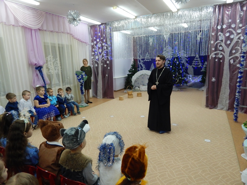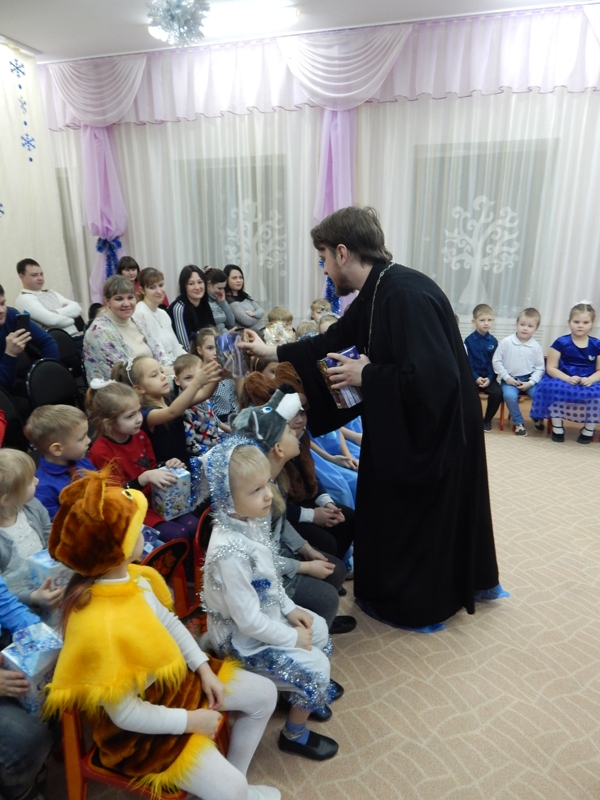 10 января благочинный Петровского округа иерей Сергий Протасов посетил МБДОУ №17 «Рождественский». Воспитанники представили вниманию гостей театрализованное представление. Со словами поздравления к ребятам обратился отец Сергий, рассказав об истории возникновения этого праздника, поздравил детей и их родителей с Рождеством Христовым. В завершении утренника все получили сладкие подарки, а присутствующие гости смогли полюбоваться поделками, сделанными детьми.