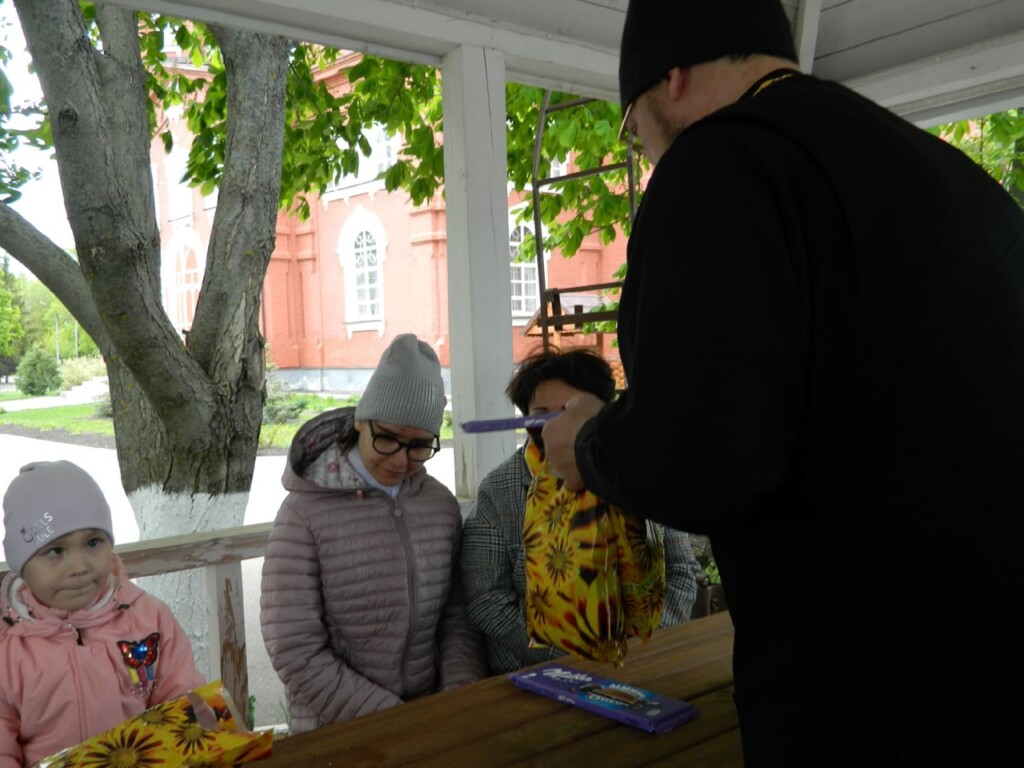 Завершили насыщенную программу Дня семьи традиционной общей фотографией и сладкими подарками от благочинного Петровского округа иерея Сергия Протасова.