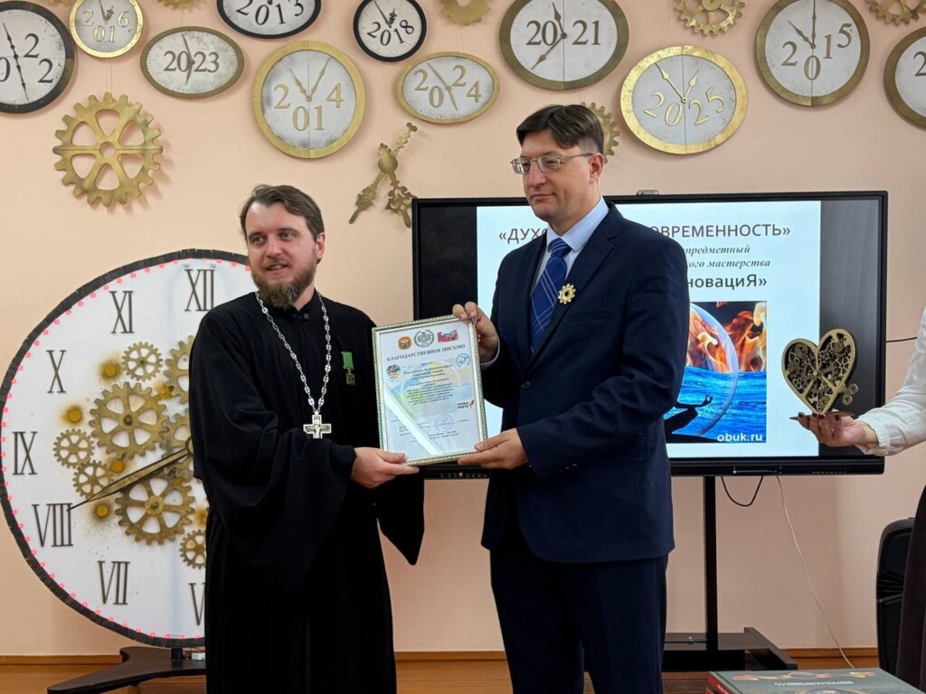 Отец Сергий обратился к педагогам с приветственным словом и пожелал профессиональных успехов.